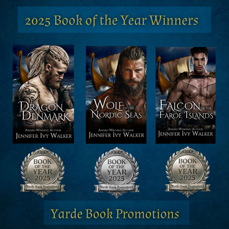 Dragon of Denmark has won the Bronze Award for Romance, Wolf of the Nordic Seas has earned the Silver Award for Fantasy, and Falcon of the Farore Islands is the recipient of the Bronze Award for Fantasy.